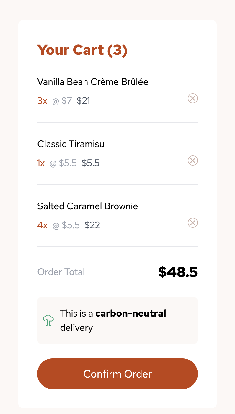 Desserts Web Order is a frontend-only website template designed to showcase an interactive and appealing design for a food ordering system in cafes that use a web platform. This template focuses on the user interface, providing a reference for anyone looking to create a web application for food orders. It is built using Next.js and Tailwind CSS.